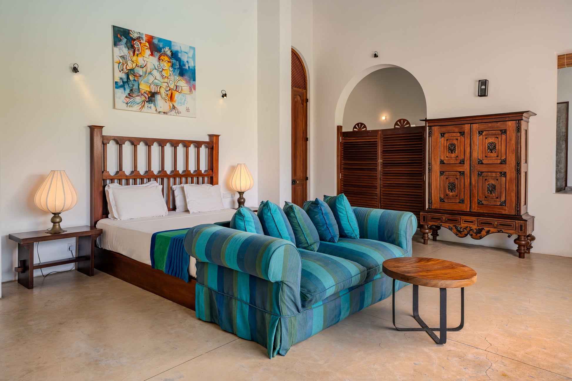 Erleben Sie puren Luxus in unserer Ocean Suite, wo atemberaubende Ausblicke auf das Meer auf elegantes Interieur treffen. Mit beruhigendem Dekor und Panoramablick ist diese Suite perfekt zum Entspannen im Einklang mit der Natur.
