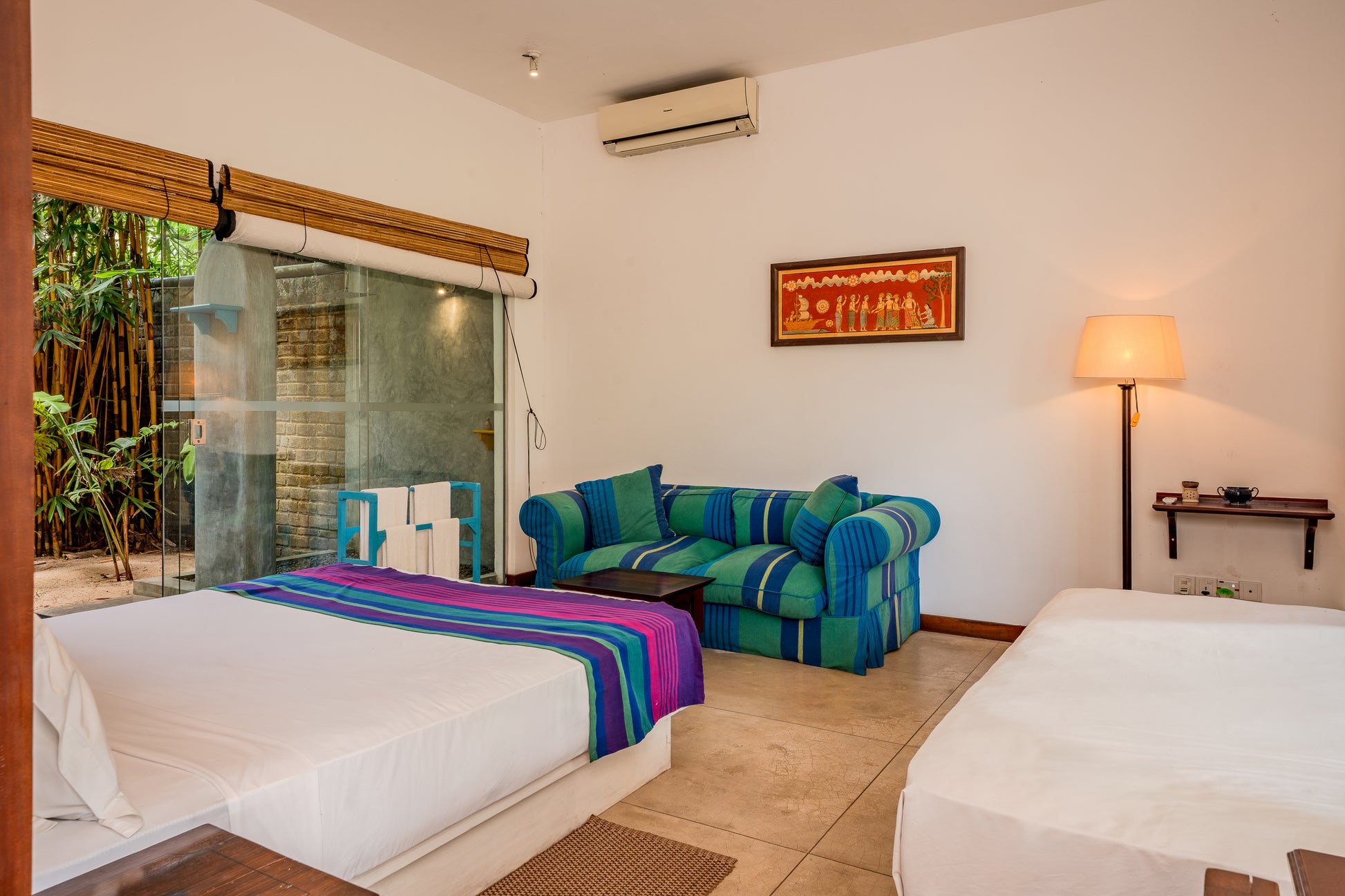 Für Gäste, die besonderen Komfort und Eleganz wünschen, bieten unsere Super Deluxe Zimmer eine geräumige Oase mit geschmackvollem Dekor und gehobener Ausstattung. Perfekt zum Entspannen nach einem Tag voller Entspannung und ayurvedischen Behandlungen.